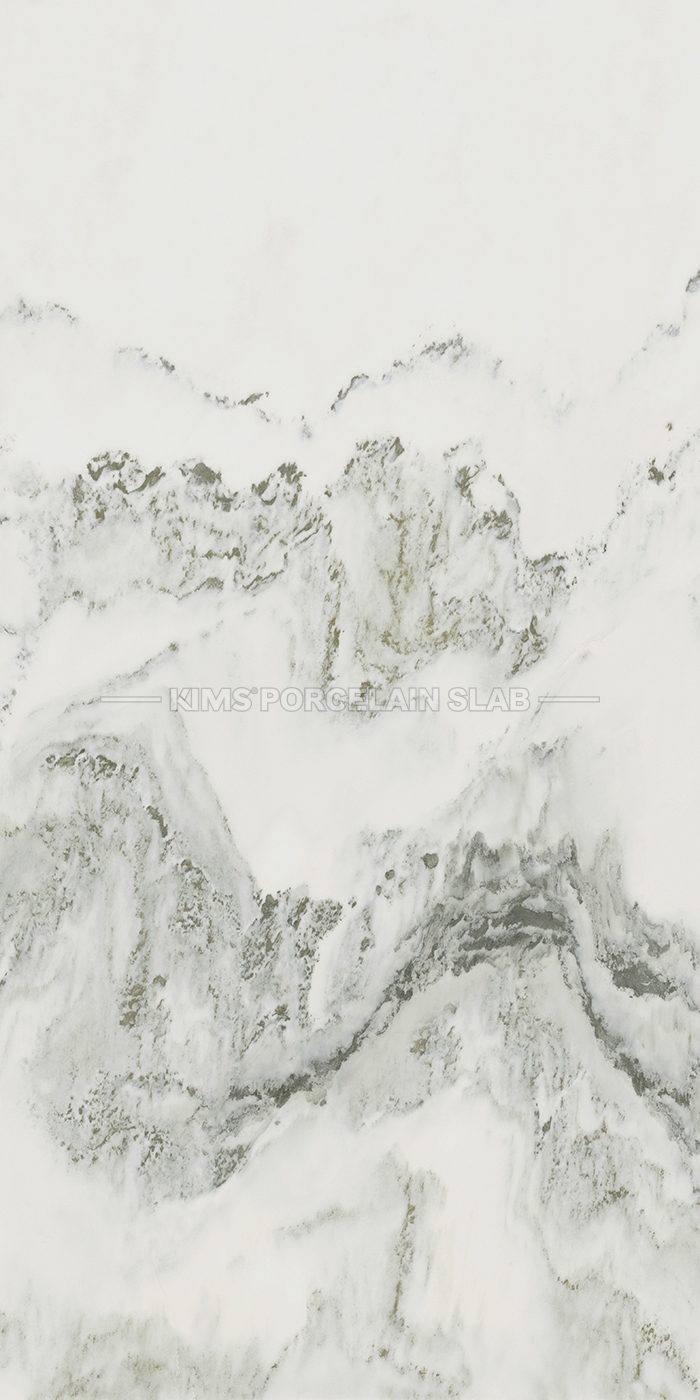水墨画以岩板面为纸,以纹为笔,晕色渲染,线条浑然,空灵,透彻,纯粹。其中每一座的山、谷、丘、水,都有着不同的模样;疏密中有变化,气势更是连贯,别有一番洞天。